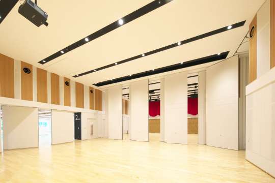 フレキシブルに大フロアを分割、優れた遮音性が自慢の移動間仕切RS-120D_SED