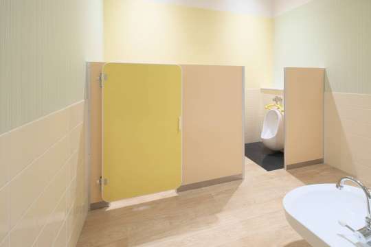 可愛らしいカラーで安全設計のトイレブースです