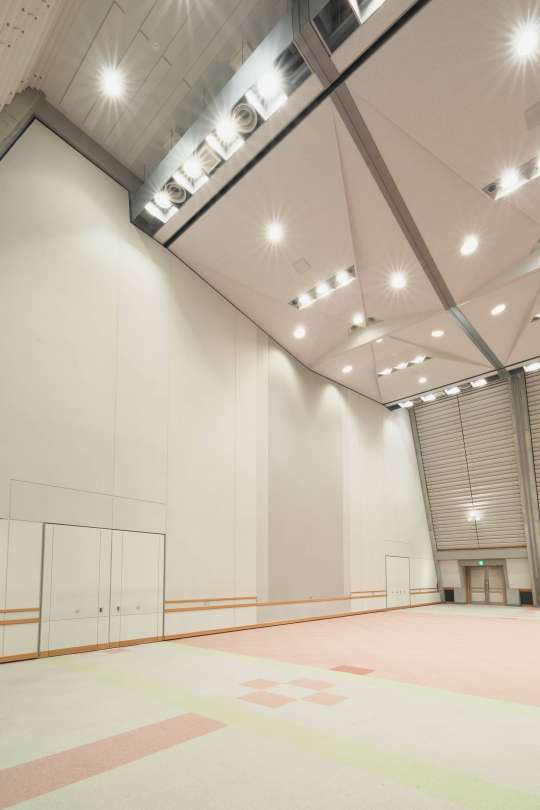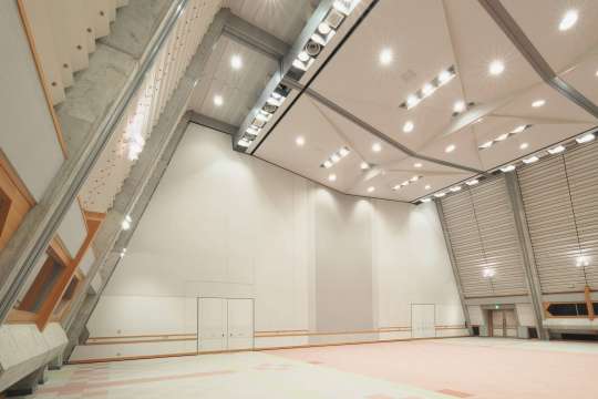 個性的な壁形状に合せてしつらえた電動大型移動壁です