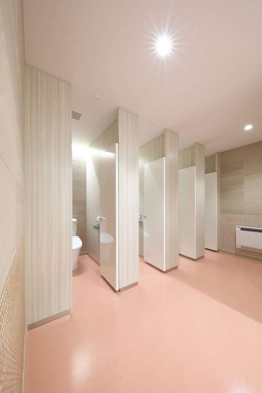 フラットフェイスデザインの美しいトイレブースです