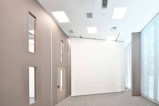 広大な会議室をフレキシブルに間仕切る大型移動壁です