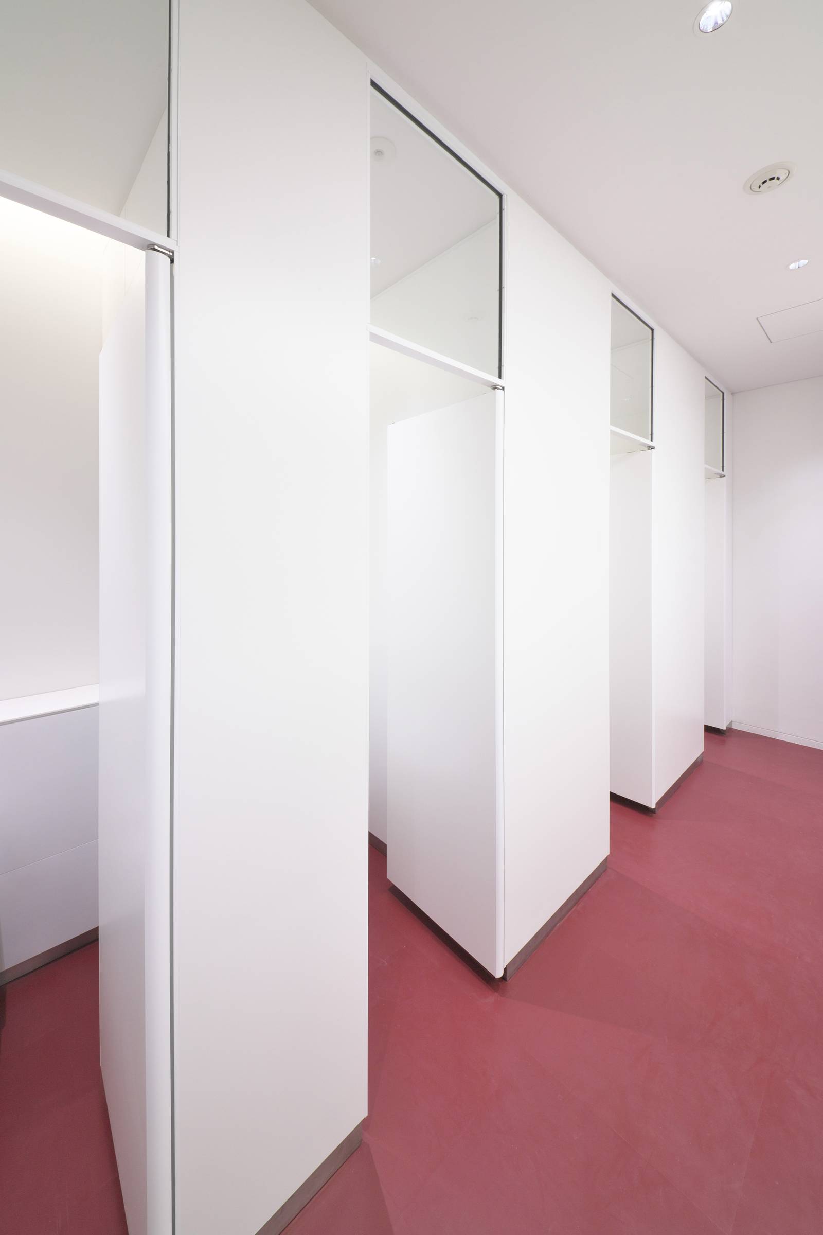 ドア上はガラスで明るく安心のトイレブースです