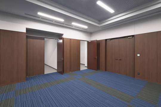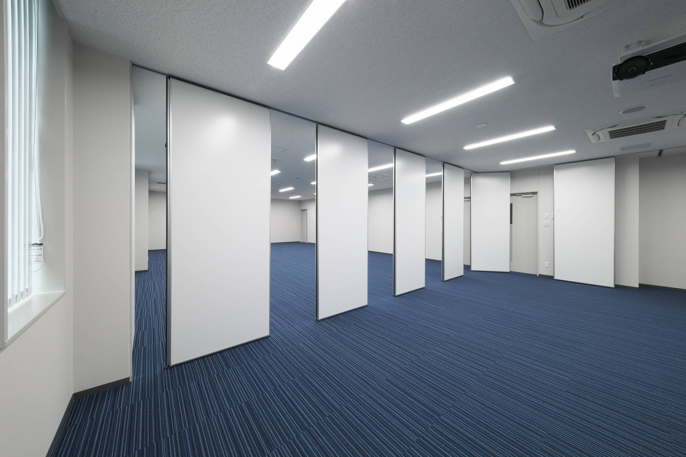 スムーズな動作でスピーディに設置、遮音タイプの移動間仕切です