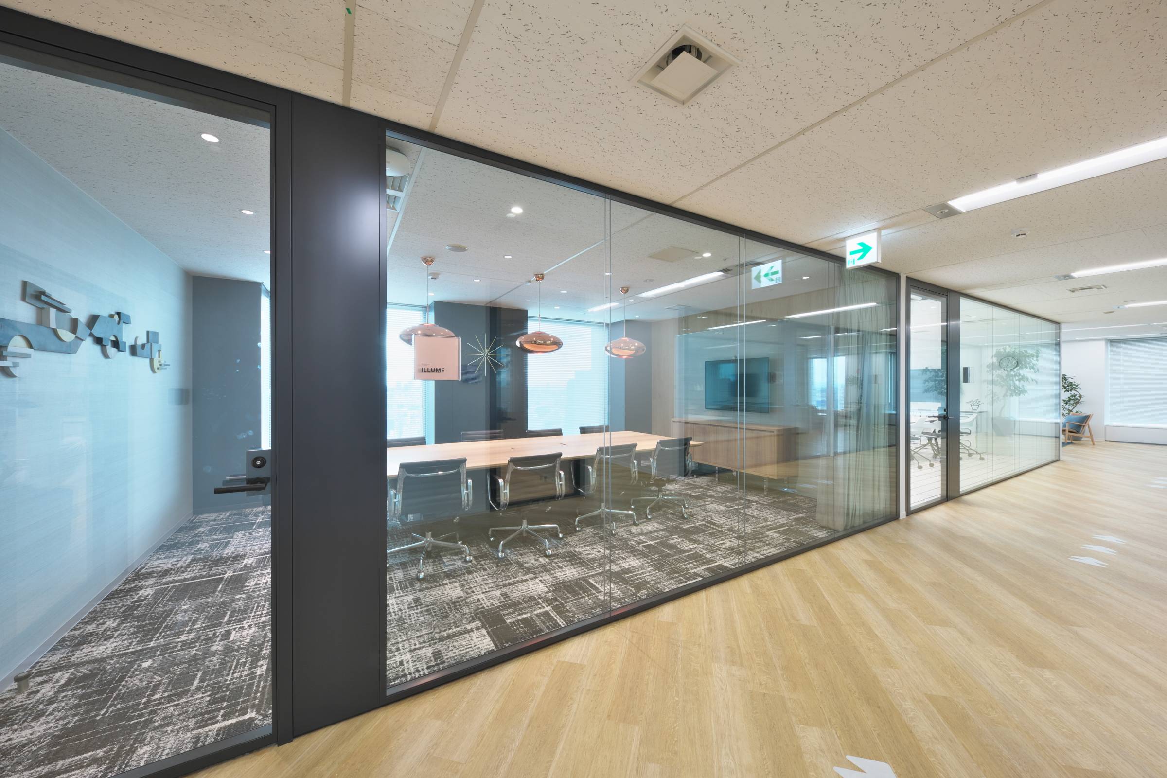 シャープなフレーミングとダブルガラスのハイグレードパーティション