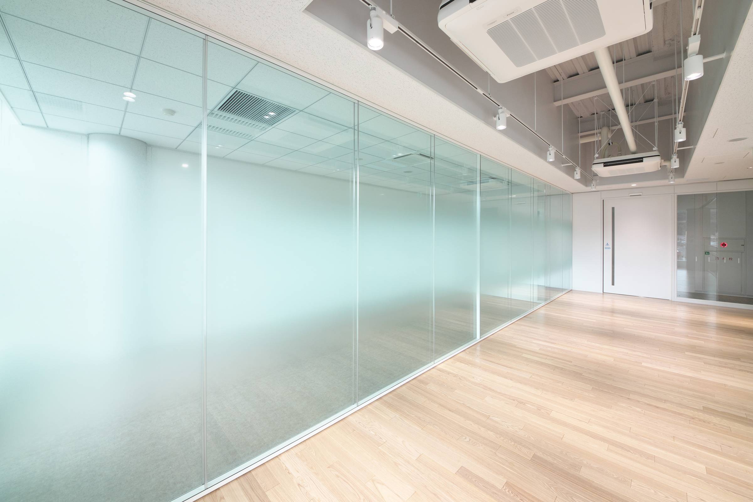ダブルガラスのスマートなデザインのパーティションです