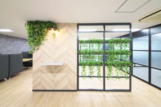 空間を緩くゾーニングします。 グリーンポットで自然でナチュラルな雰囲気が演出できます。