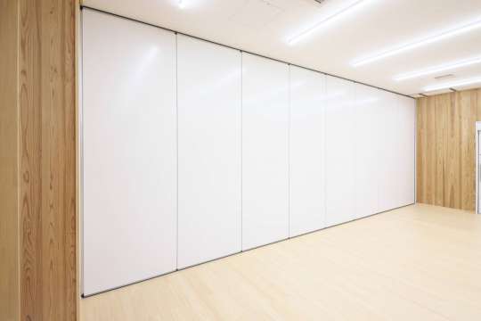 すっきりとしたエッジレスデザインとしっかりとした遮音性が特長のスライディングウォールです。