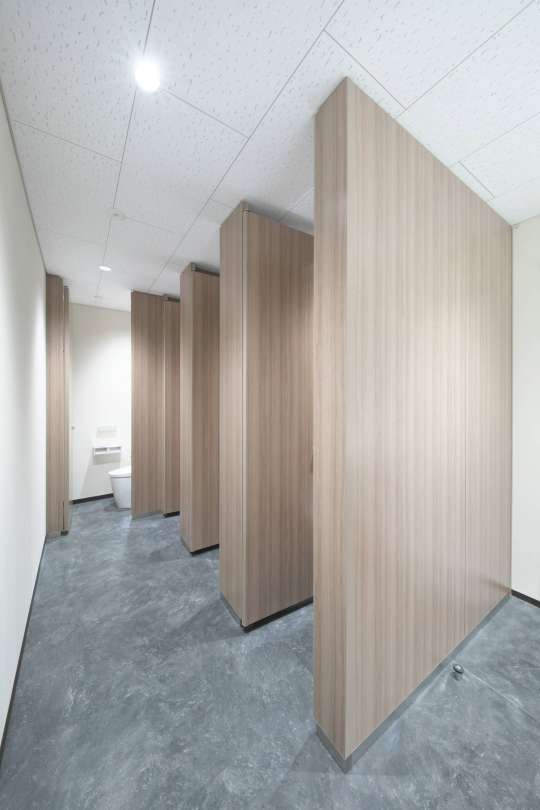 一体型シート巻きアールエッジのトイレブースです。 表面に凹凸のないフラットな仕上がりで高級感を演出します。