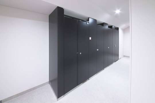 男女のトイレ間に移動間仕切を設置することで必要に応じてトイレの男女比率を変更可能です。