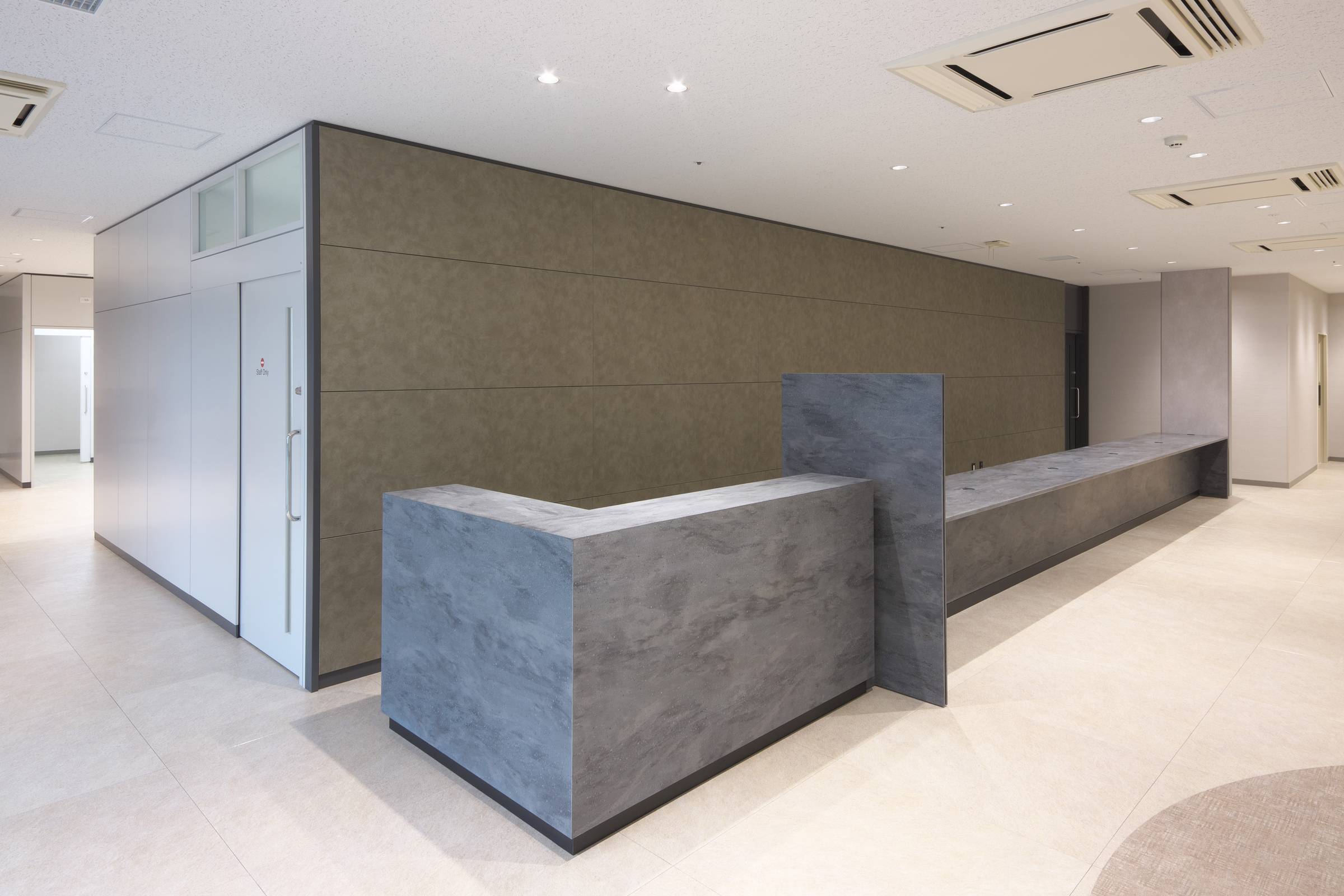 間仕切見込内にすっきりと内蔵されたカームドアを採用しました。
