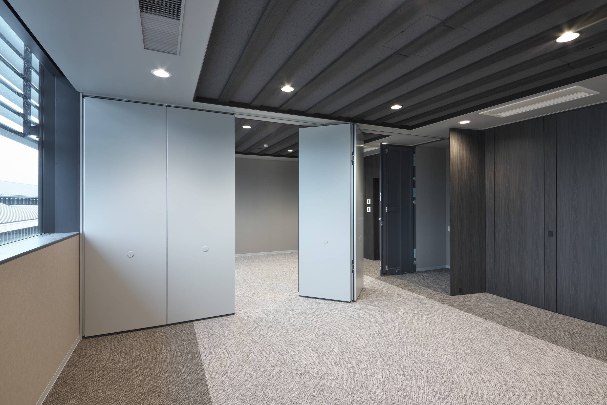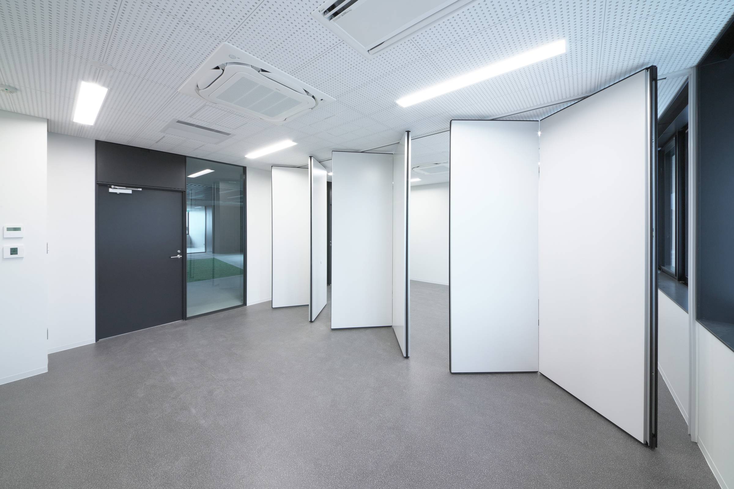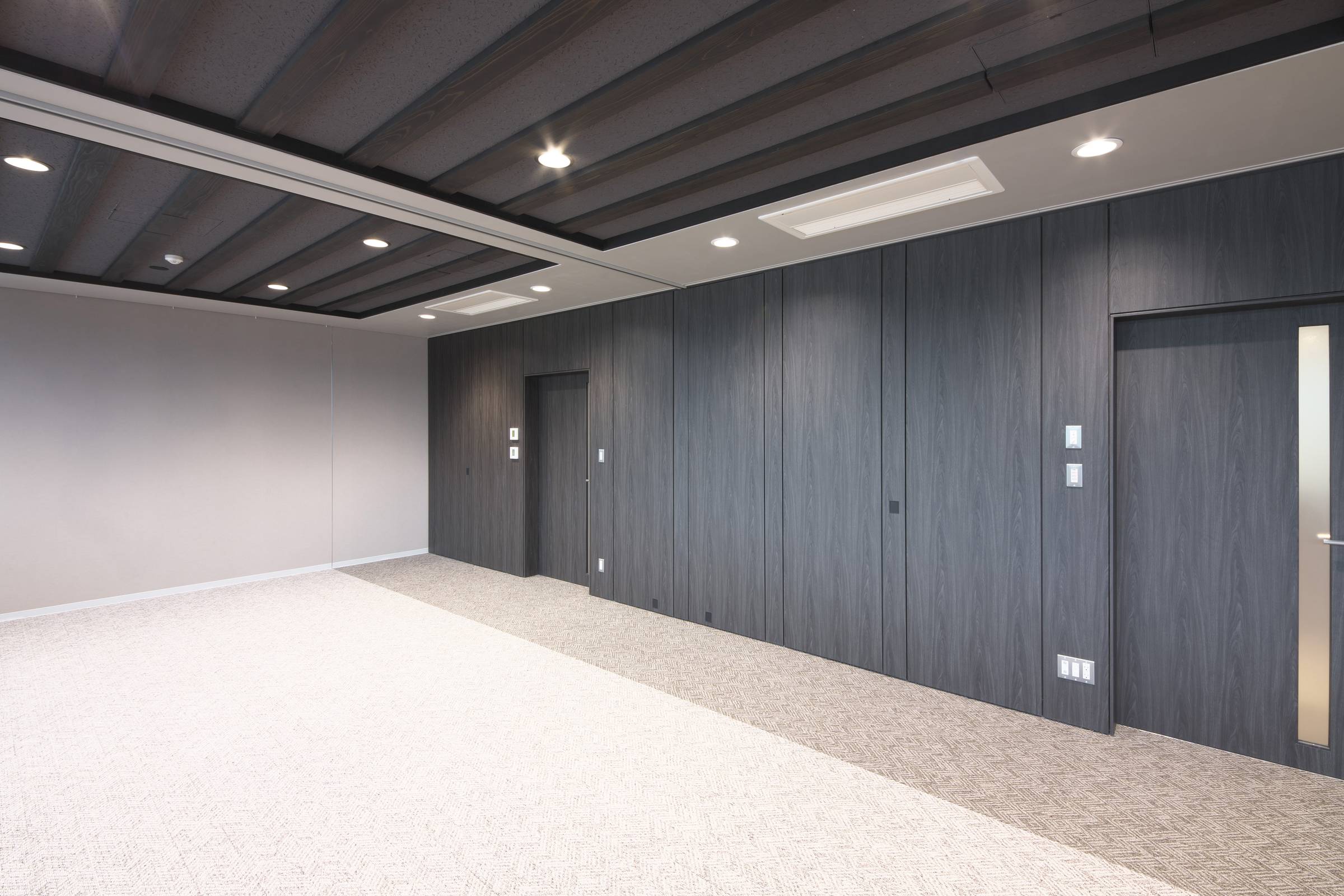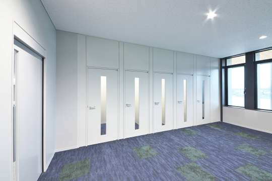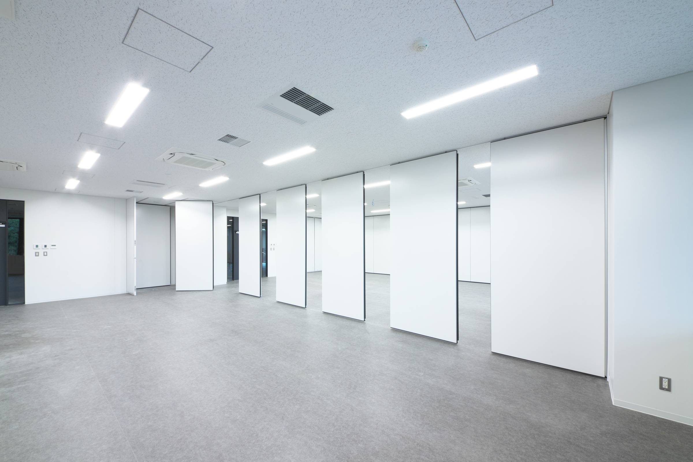 すっきりとしたエッジレスデザインとしっかりとした遮音性が特長のスライディングウォールです。