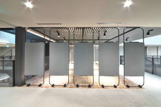 1本の吊レールで収納可能、ペアパネルの移動間仕切です。