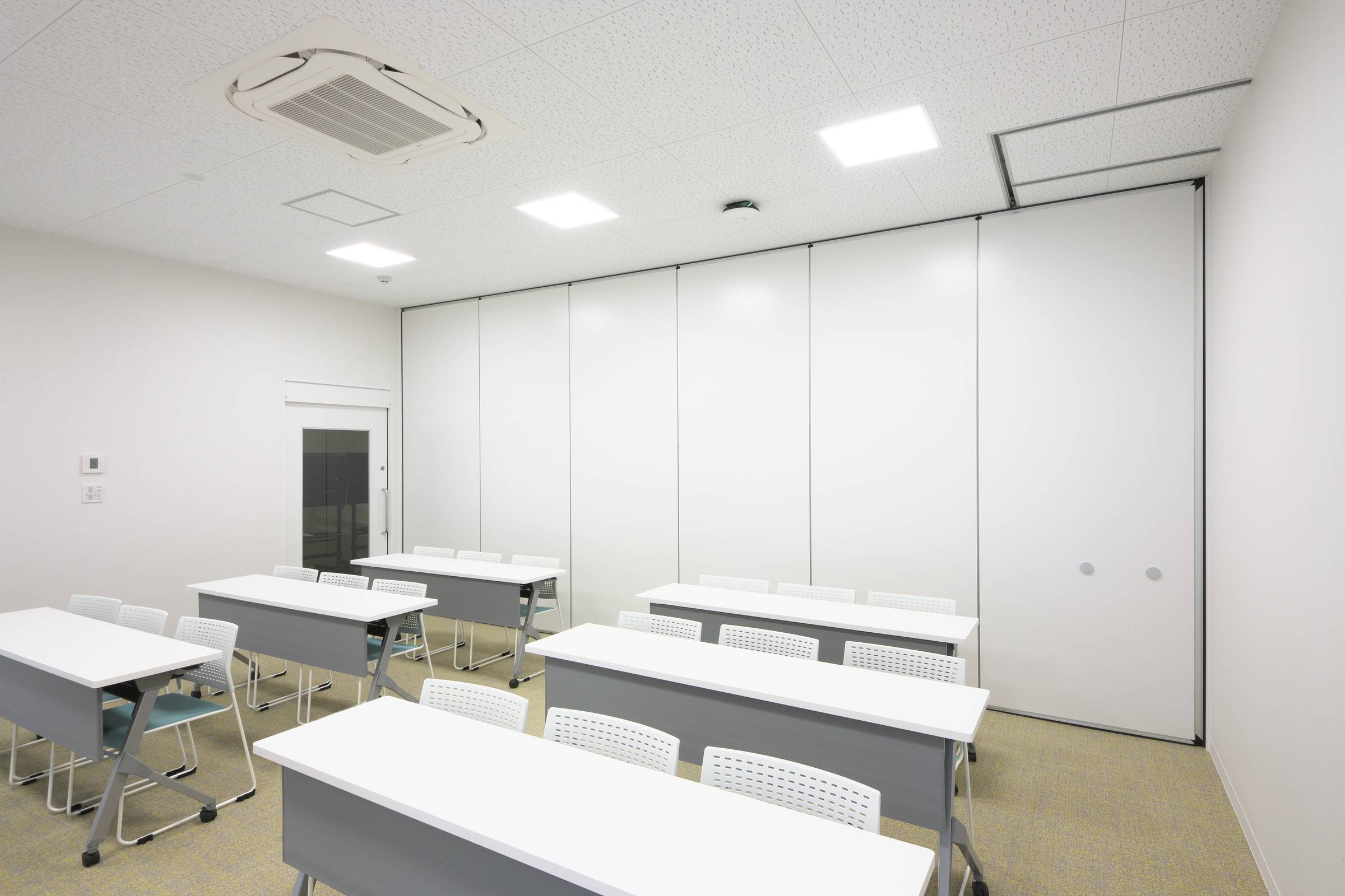 すっきりとしたエッジレスデザインとしっかりとした遮音性が特長のスライディングウォールです。