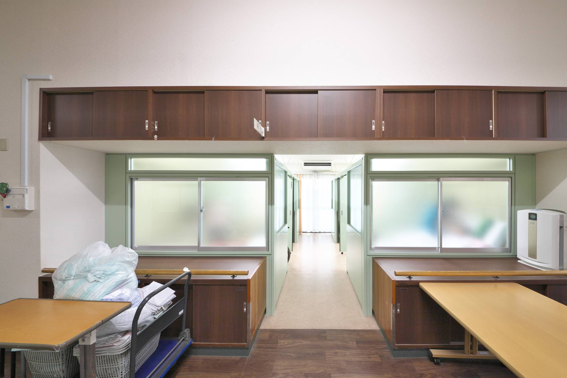 自立型パーティションと吊り戸付のパネルで多床室の個室化に対応しました