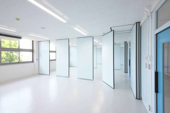 すっきりとしたエッジレスデザインとしっかりとした遮音性が特長のスライディングウォールです。