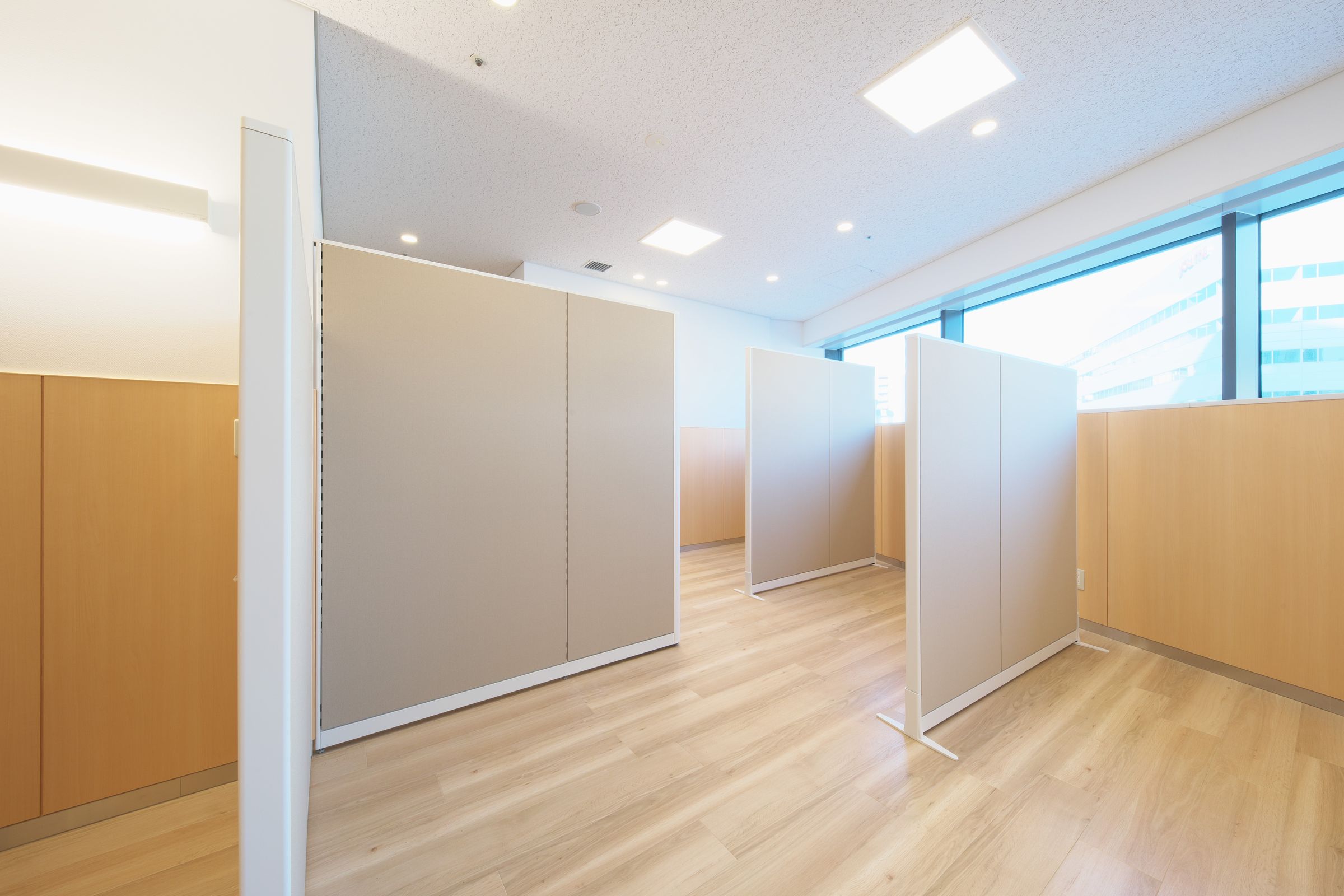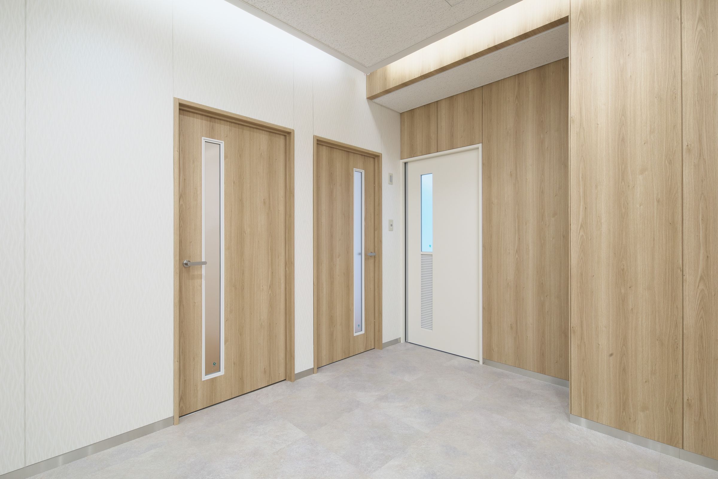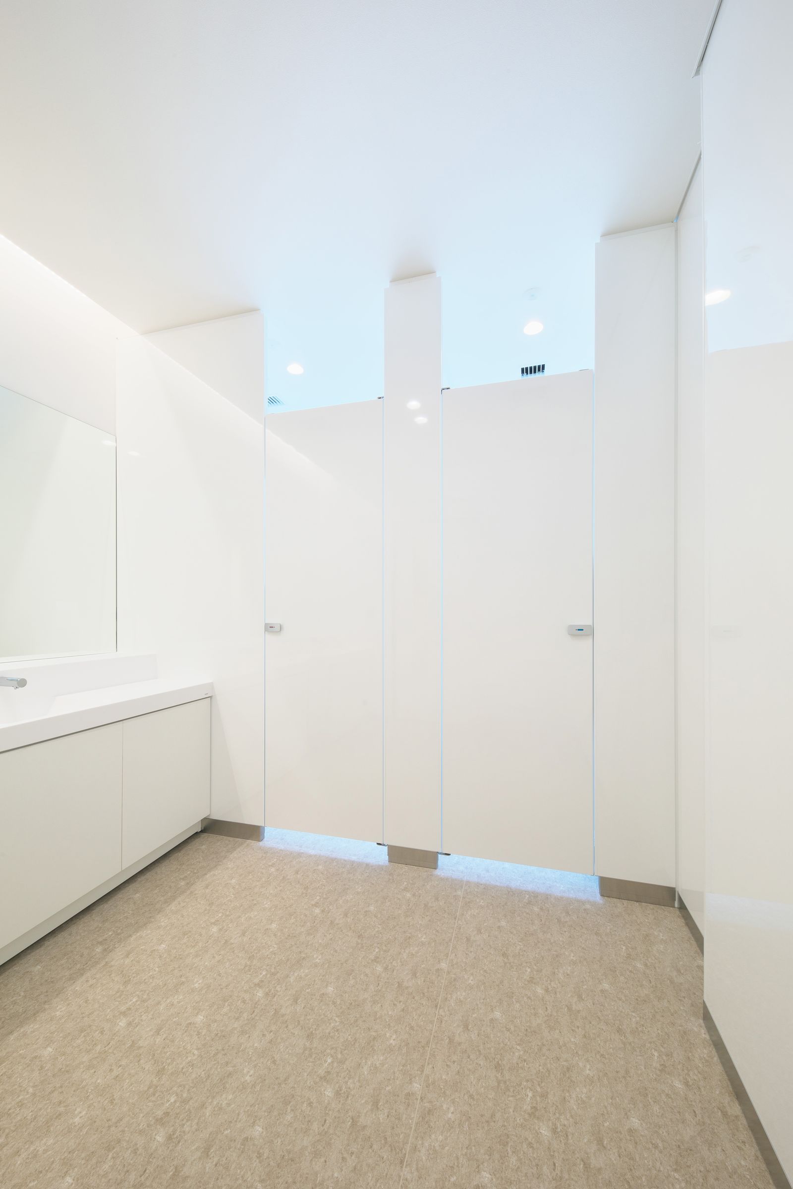 フラットフェイスで光沢感のあるトイレブースに仕上がりました
