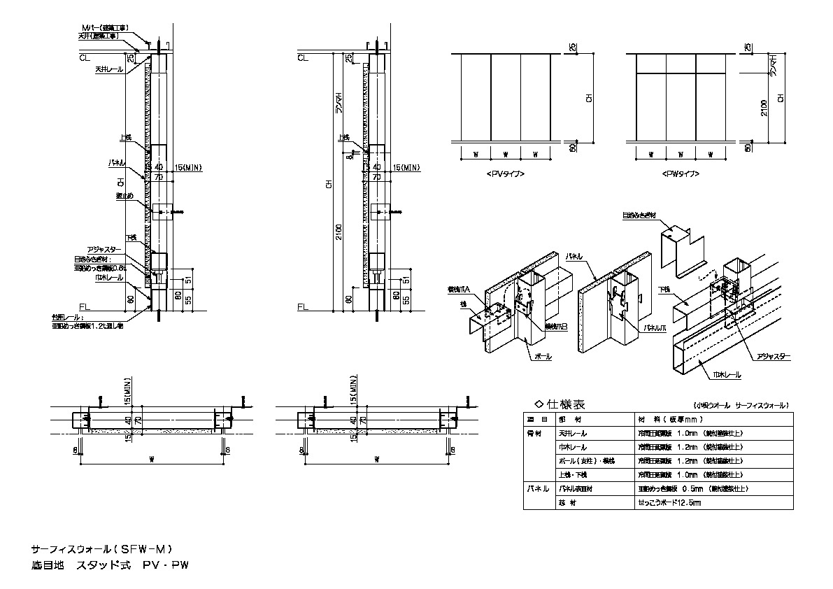 サーフィス(SFW-M) 底目地 スタッド式 PV・PW(MW巾木仕様)