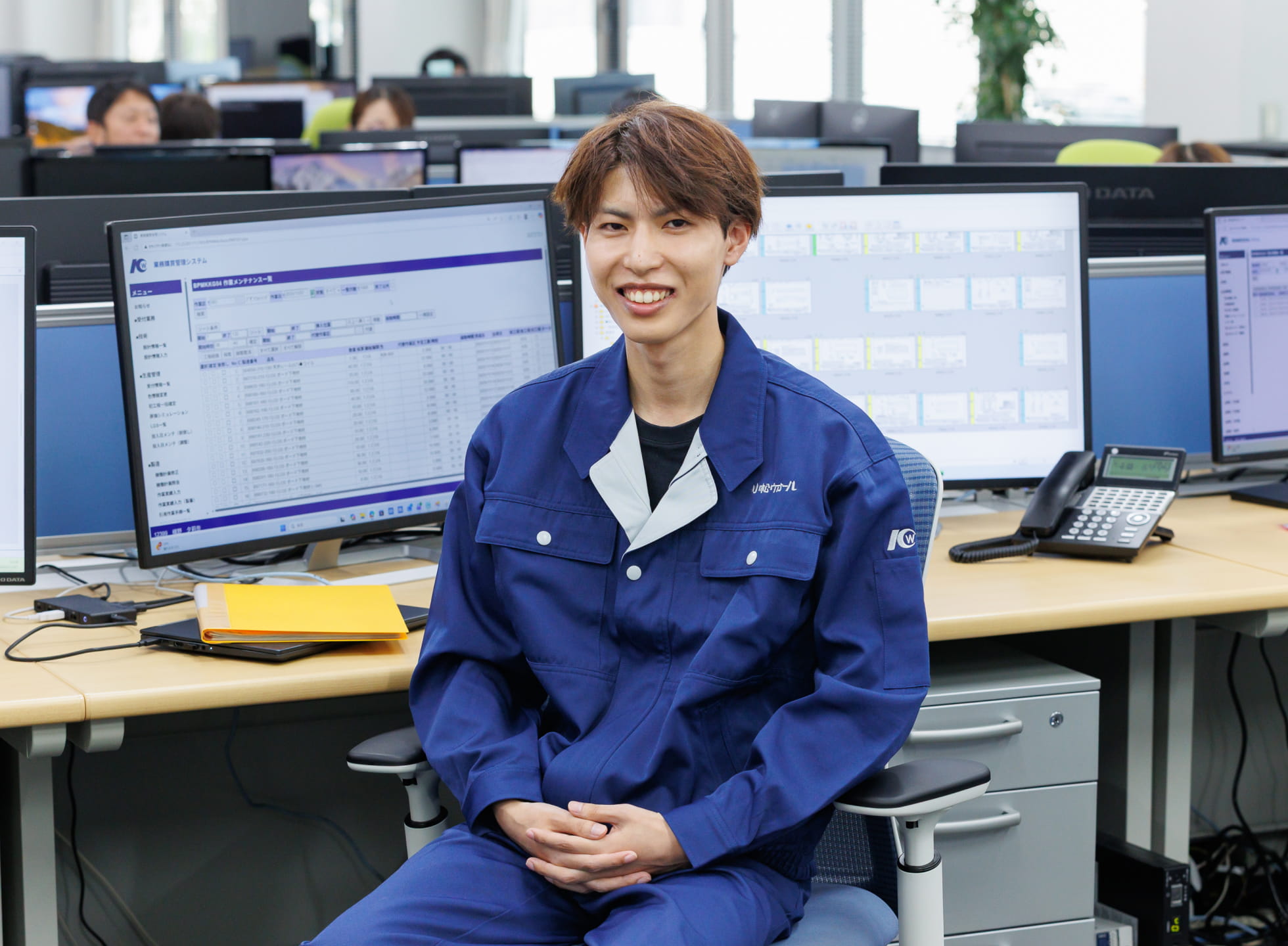 生産管理課は20名ほど。担当分野は分かれていますが、誰かが休んでもフォローできるよう、全員が複数の業務をこなせる体制です。