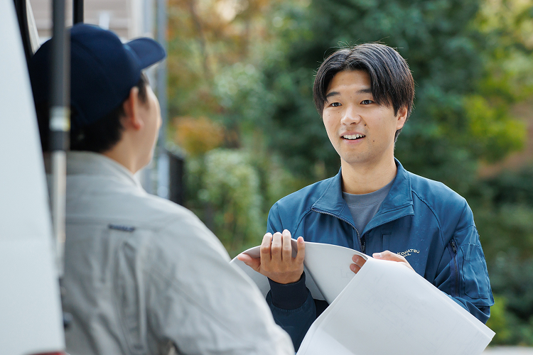 お客様への情報提供・提案、見積作成、現場調査、作図依頼、部材製作手配、施工立ち会いまで一貫して対応。現場では職人さんや協力業者への指示出しも行います。担当エリアは東京が中心ですが、関東一円や名古屋などへの出張もあります。