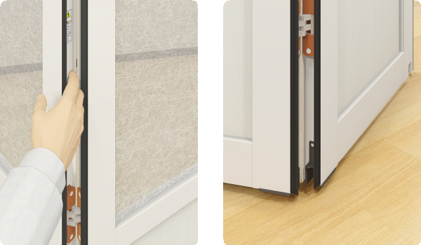 また、指挟みゴムやドア下部を保護する樹脂キャップにより、折り戸動作時の安全性も確保しています。
