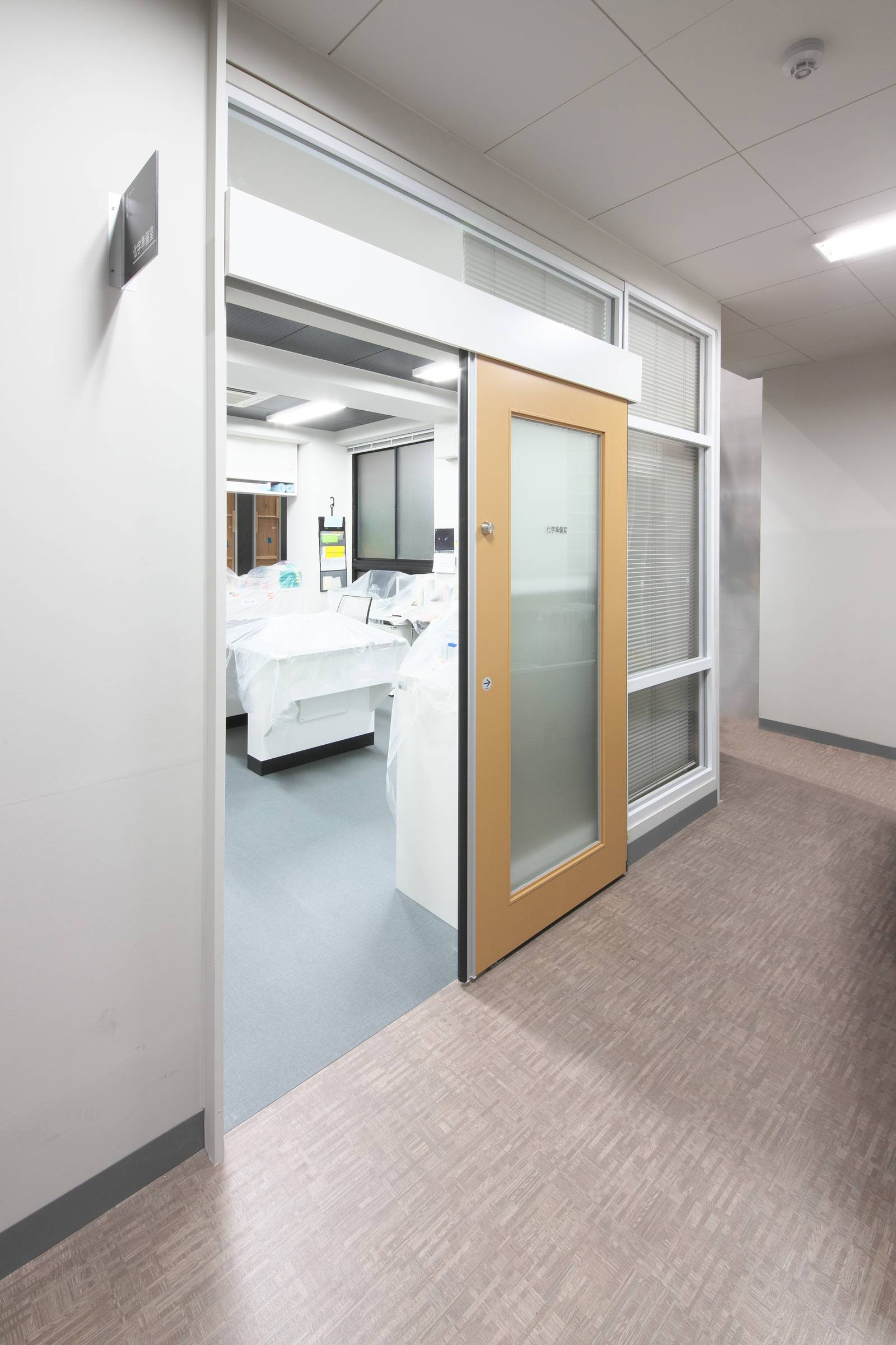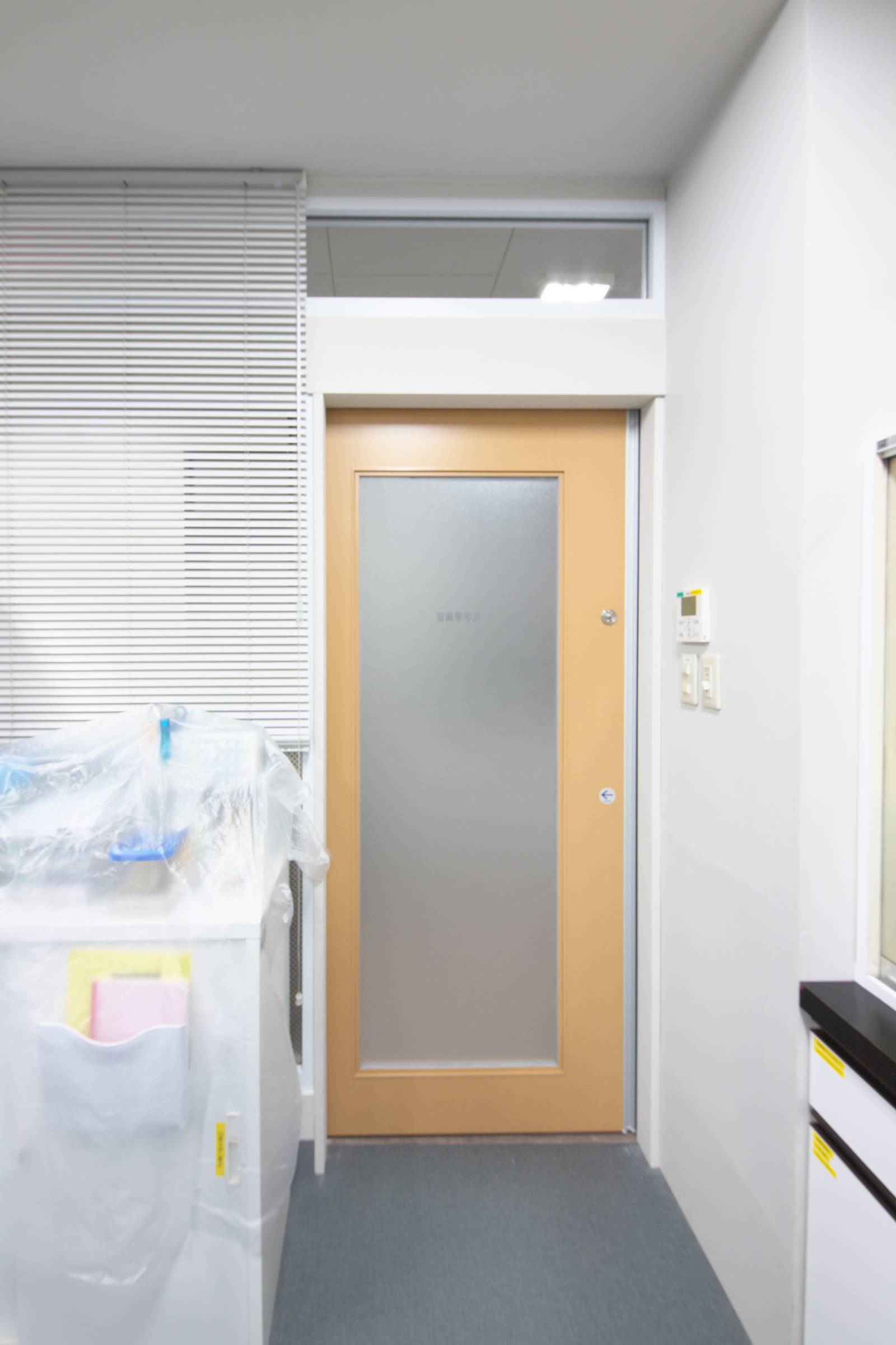 化学準備室の出入口のドアにもカームドアを採用いただきました。