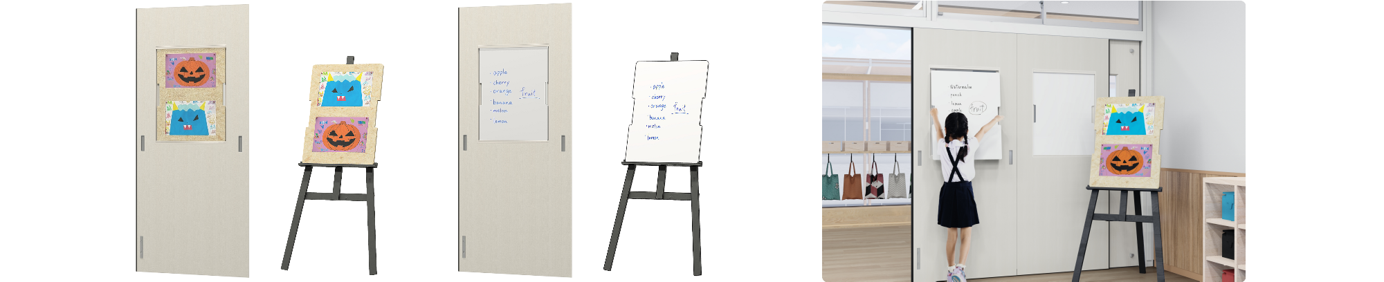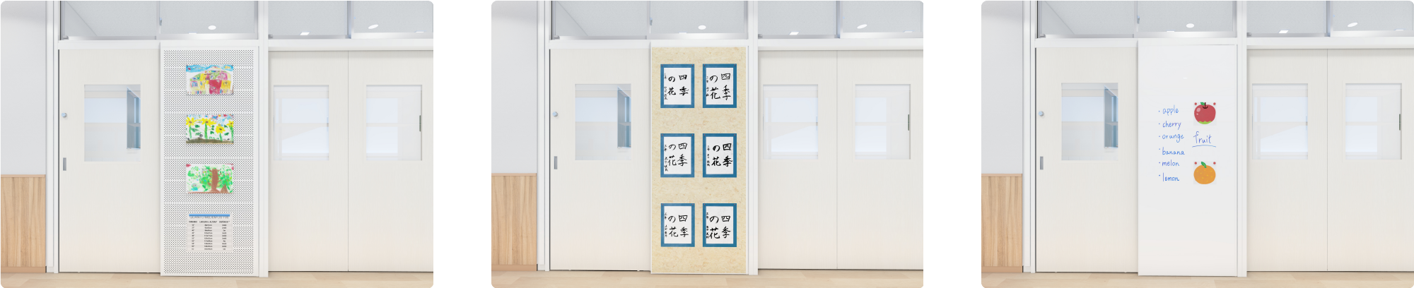 戸袋パネルはパンチングパネル、ピンナップパネル、ホワイトボードパネルをご用意しております。