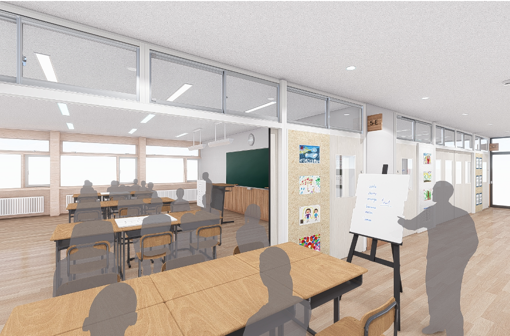 教室と廊下の段差もなくなり、子どもの転倒防止にもなります。