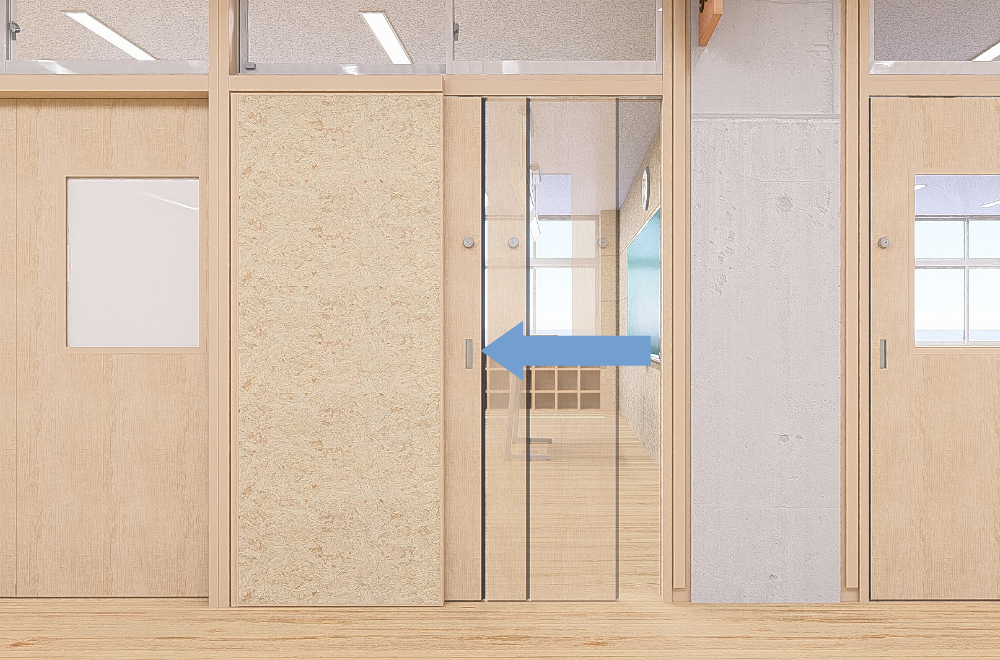 マイティ-Lux80SP オープンセサミ・Hは、後付けで大開口が実現できる学校用間仕切です。