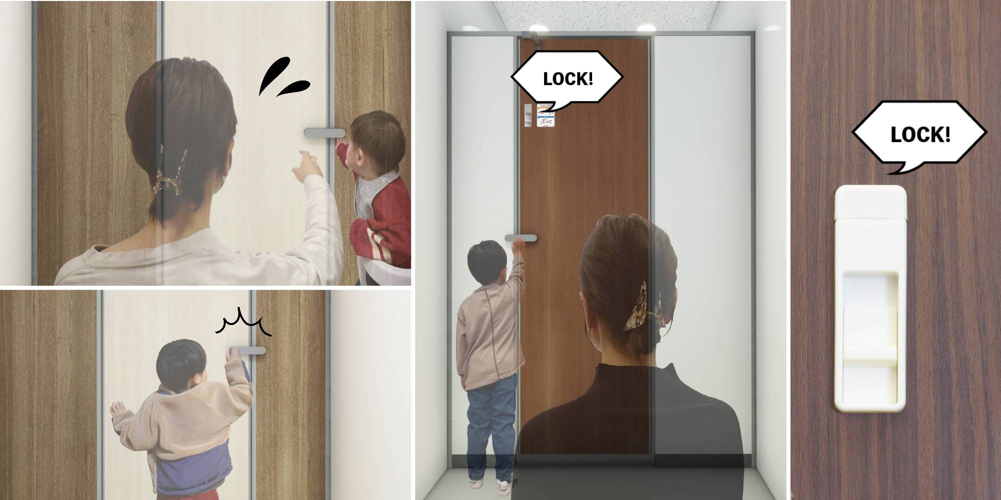 ドアとパネルに隙間を設け、指挟み事故を防止し、ドア四方にはクッション性をもたせるなど、