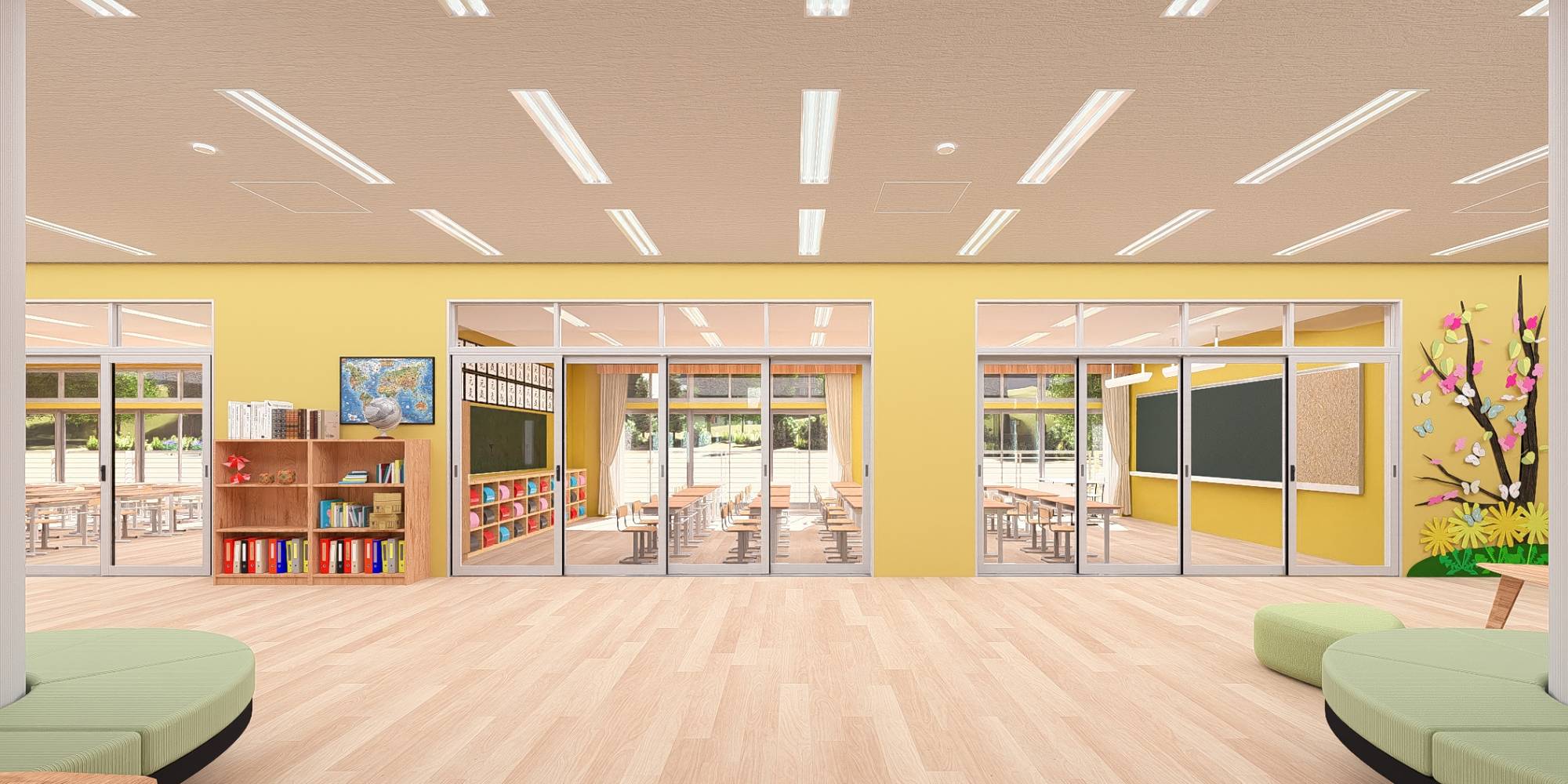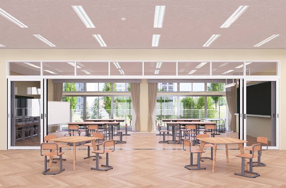扉を開放し、空間を繋げることで、スペースを広く活用したグループ学習などが可能となります。
