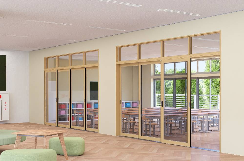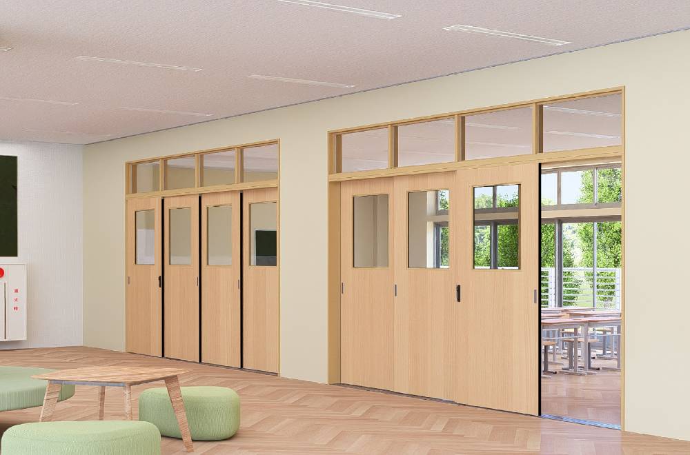 hirako(ヒラコ)は、学校向けを主とした大開口対応の多連引戸です。