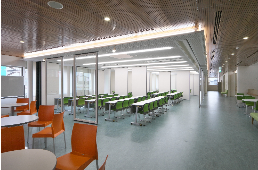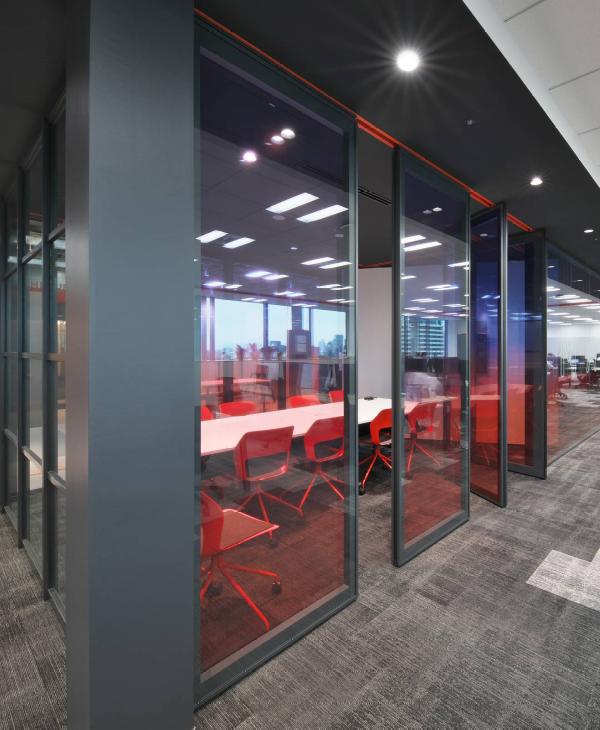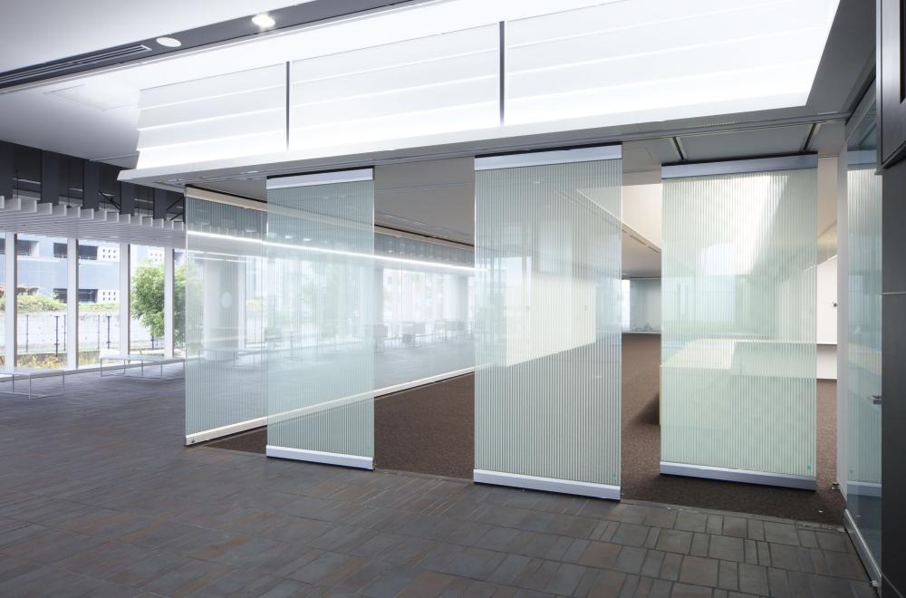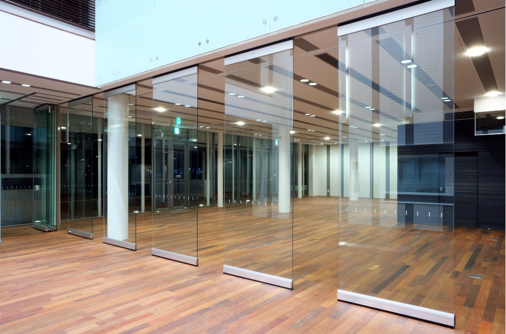 動かせるガラス間仕切で、開放的な空間をデザイン
