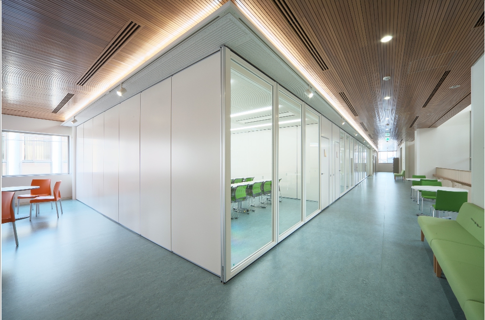 遮音も備えたガラス移動間仕切、ミセルウォール
