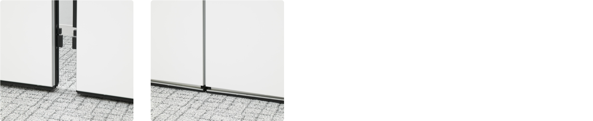 先頭、中間パネルはもちろん、ドア付きパネルも押すだけで天井・床にしっかり圧着。
