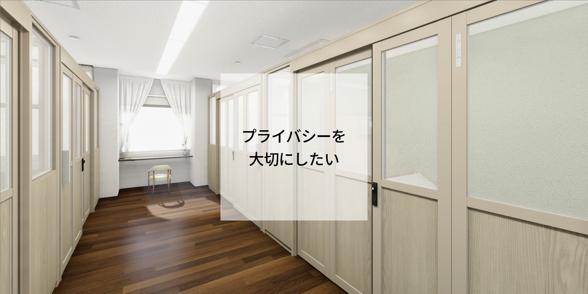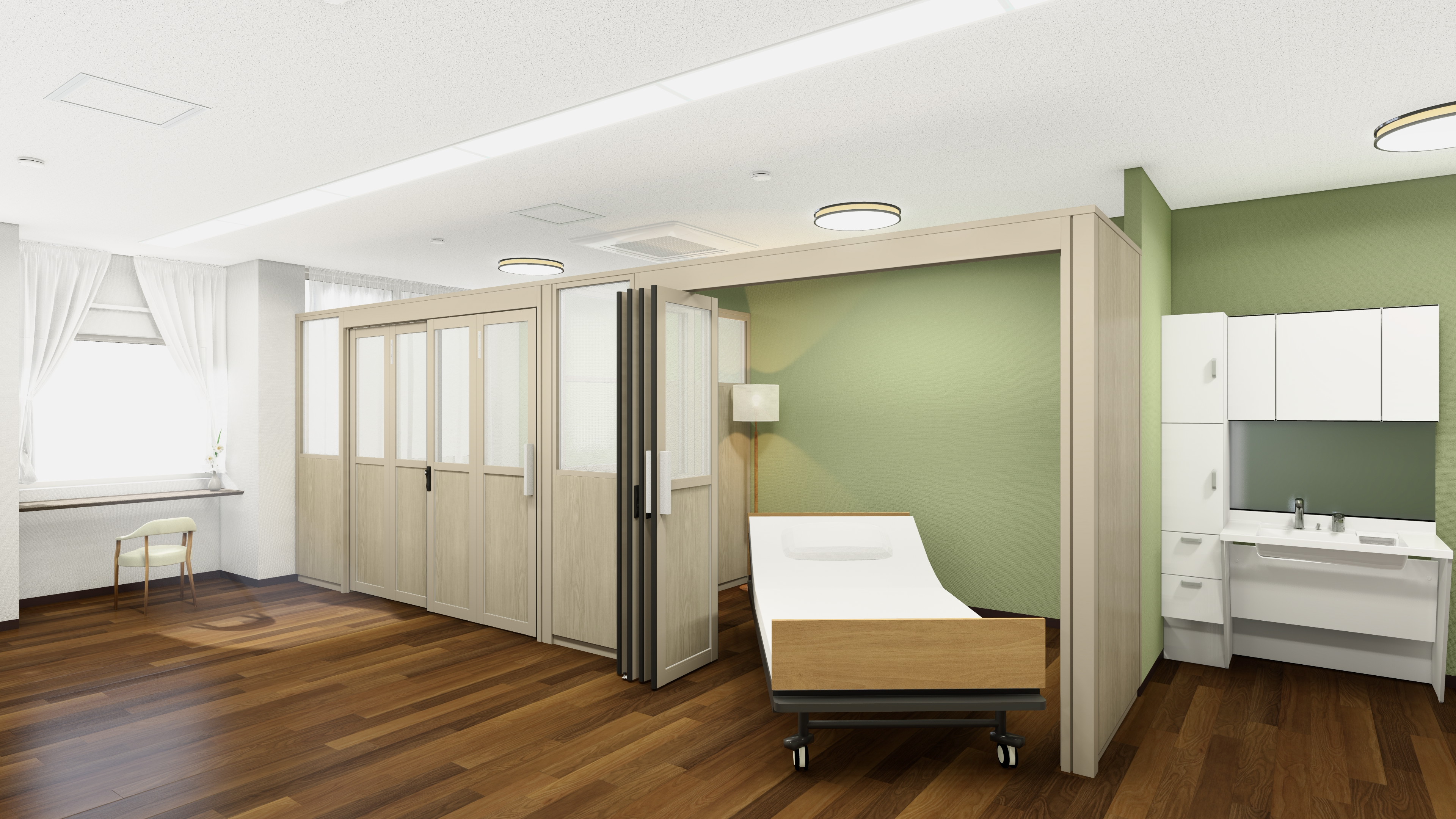 快適で安らぎある居室空間を 多床室の個室化に、自立型パーティションで対応