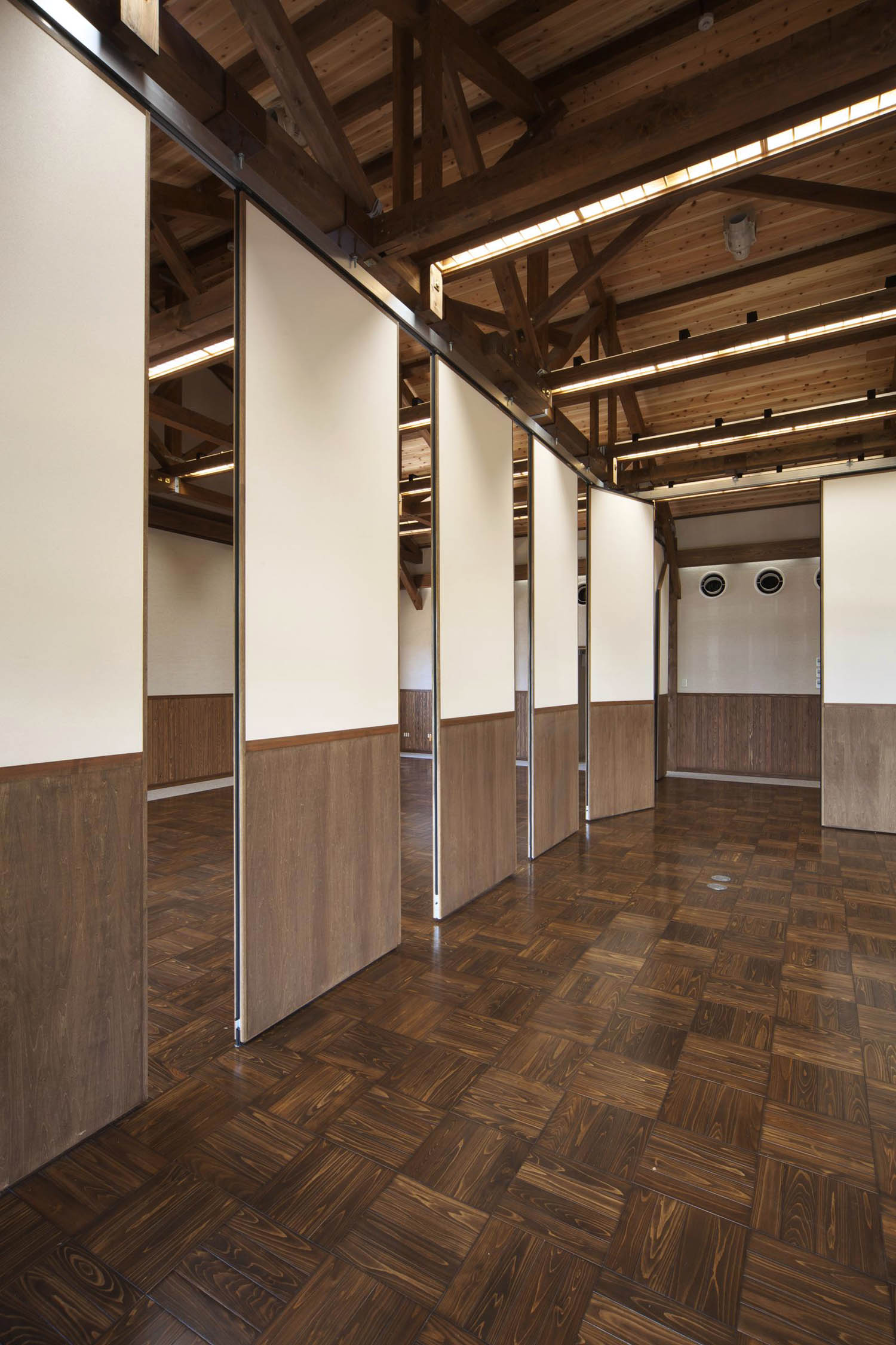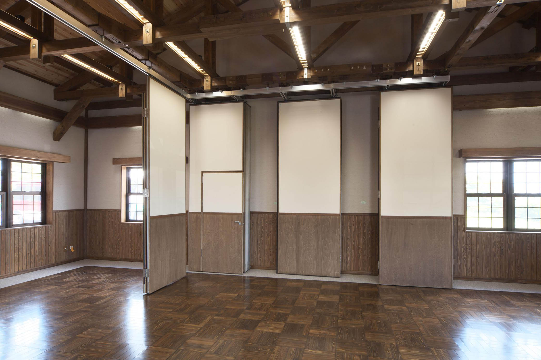 開放したオープンスペースから、4分割まで、レイアウトの変更が容易に可能なスライディングウォール。