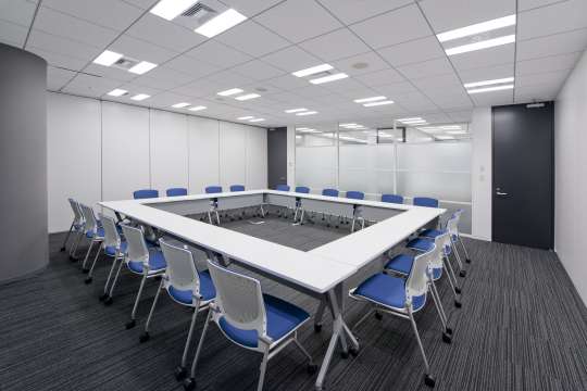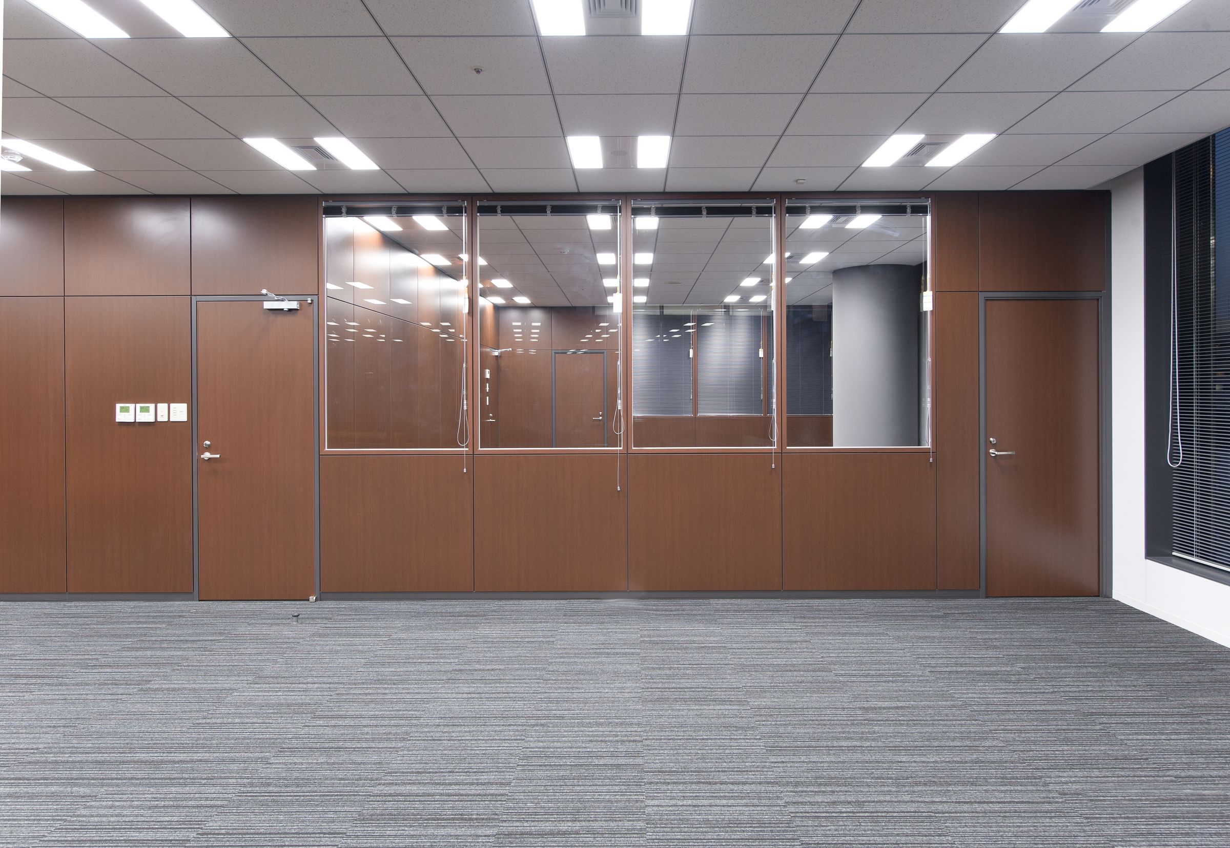 木目のプリント鋼板を採用したスチールパーティション、マイティ-70。