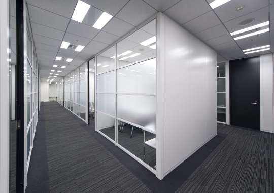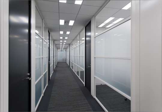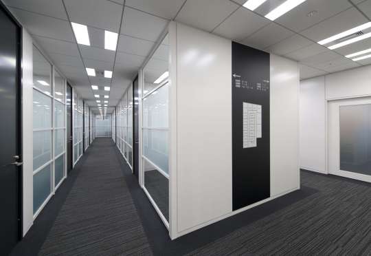 4段ガラスブロックデザインを採用したマイティ-GWALL。隔壁には全面パネルを設置。