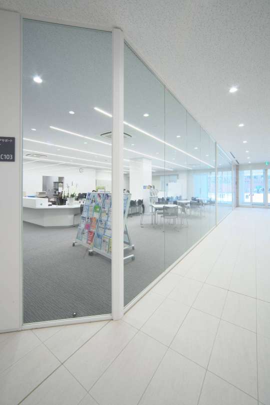 シングルガラスのガラスパーティション