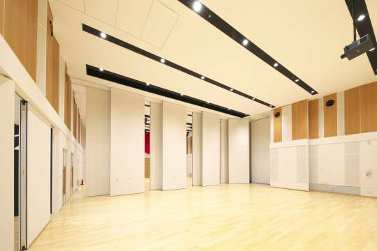フレキシブルに大フロアを分割、優れた遮音性が自慢の移動間仕切RS-120D_SED