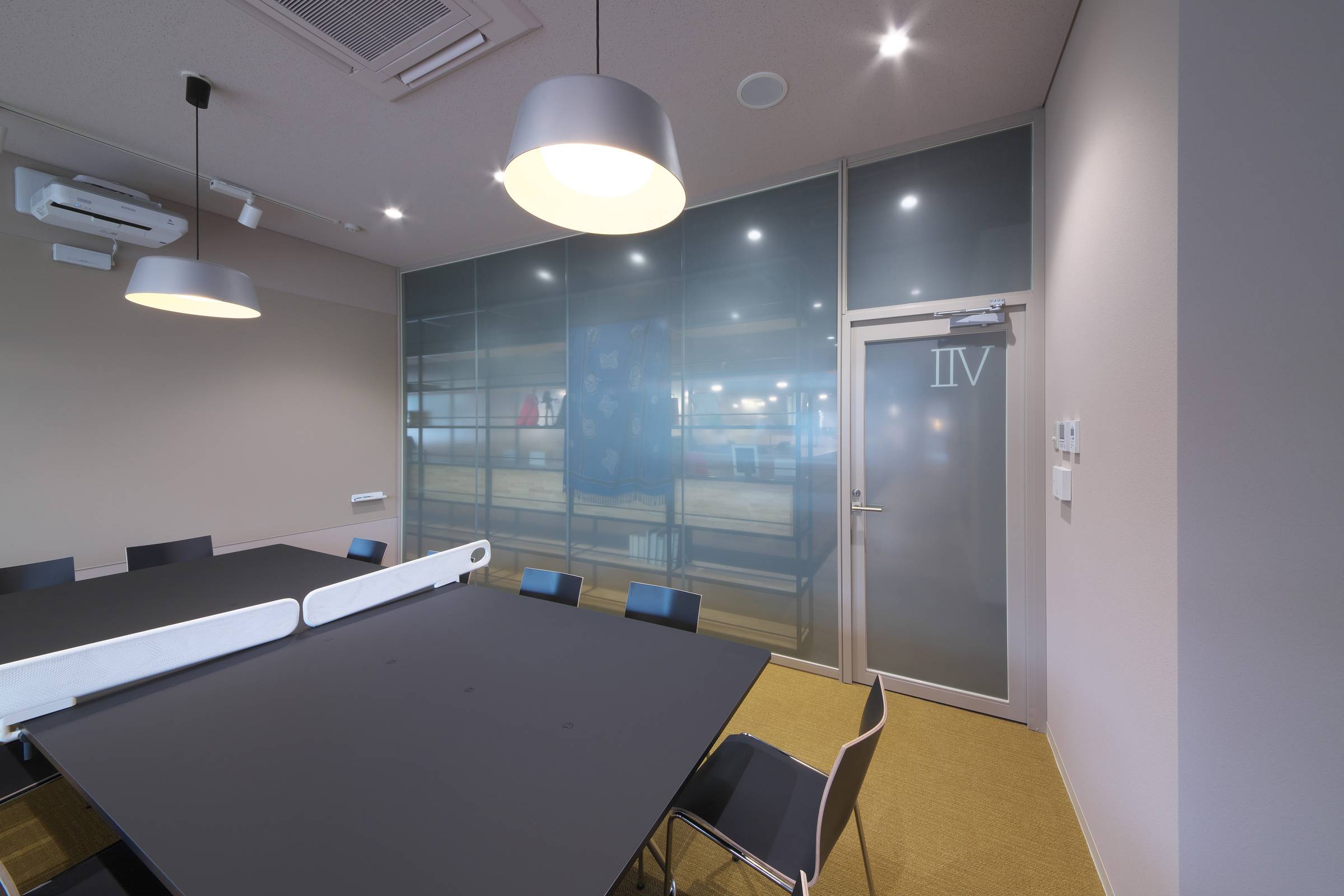 ミーティングルームの開口をスモーク仕上げのガラスパネルで間仕切りました