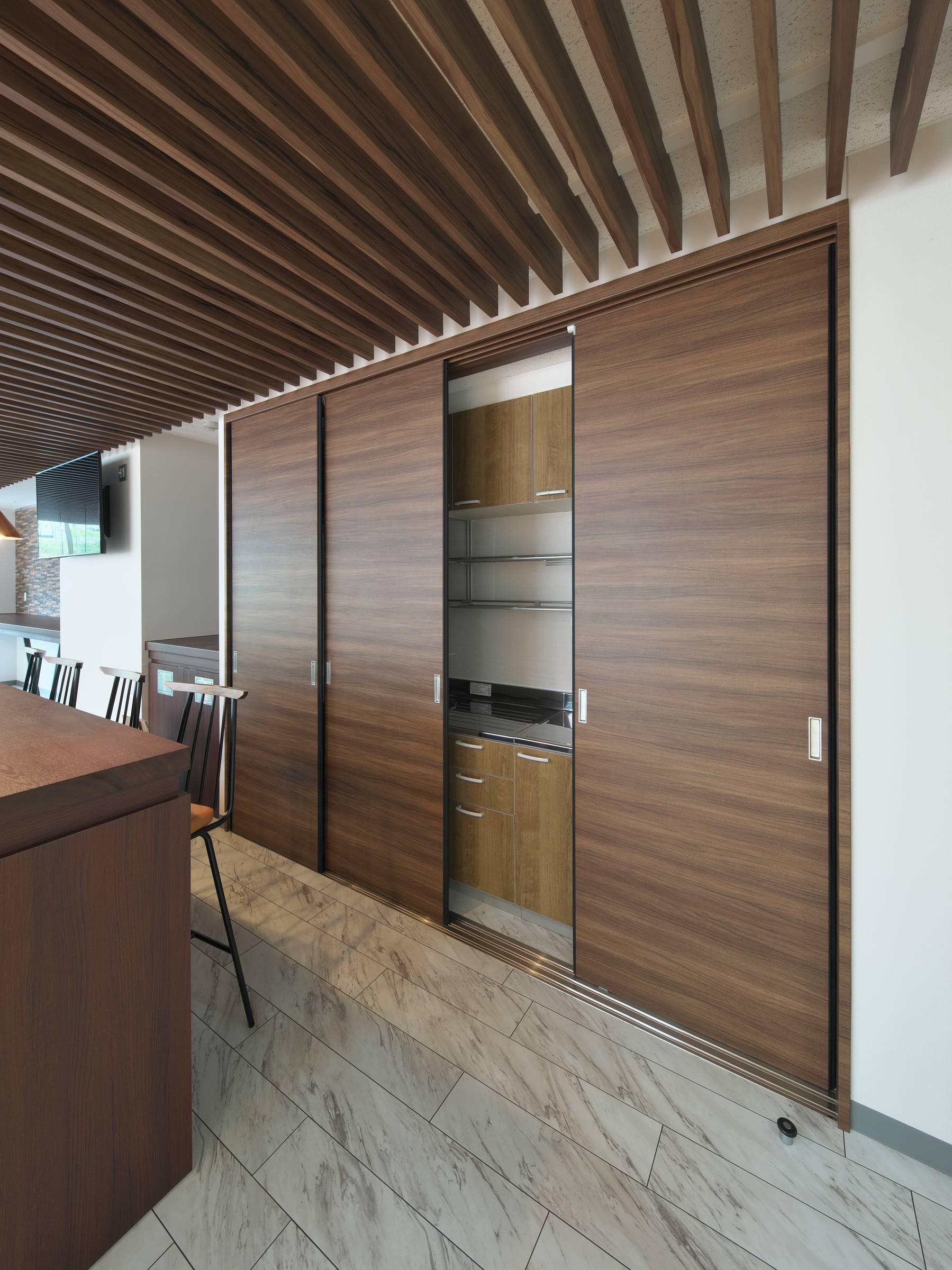 会議室は重厚な木目柄を採用しました