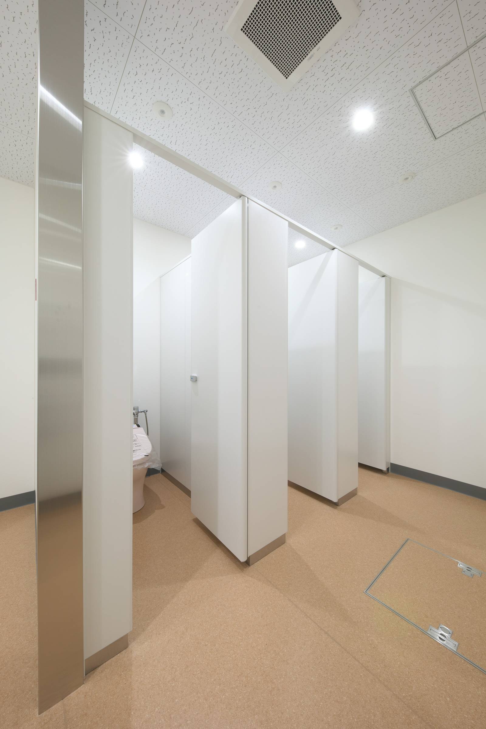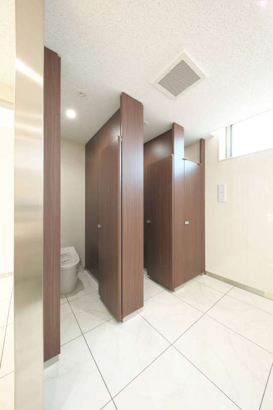 フラットフェイスなエッジデザインのトイレブースです