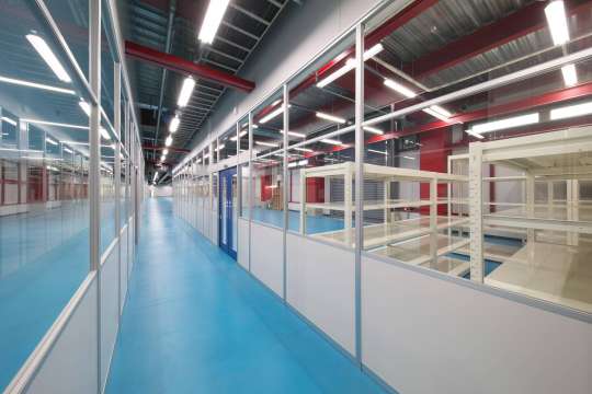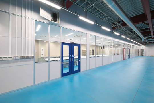 腰上ガラスのアルミパーティションで通路を作りました