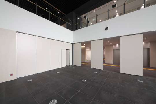 用途に合わせてホールを間仕切る遮音タイプの移動間仕切です