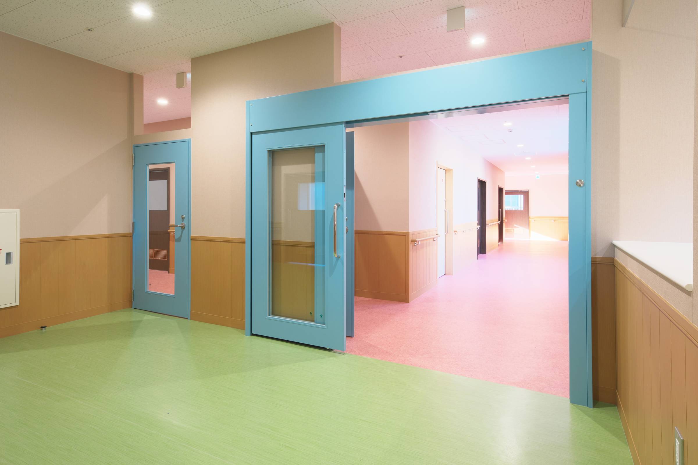 通路の開口部には見通しの良い大型の切窓を採用しました