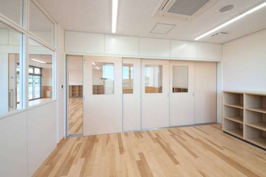 スピーディーな設置が自慢、遮音タイプの移動間仕切です