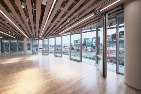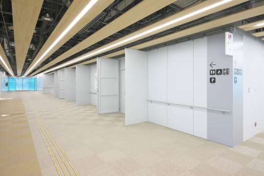 外部に開かれた交流フロアを実現する移動間仕切です