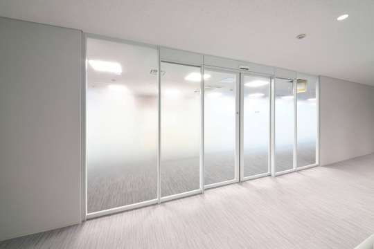 ドアは自動で開閉、おしゃれなハイタイプガラス引き戸です