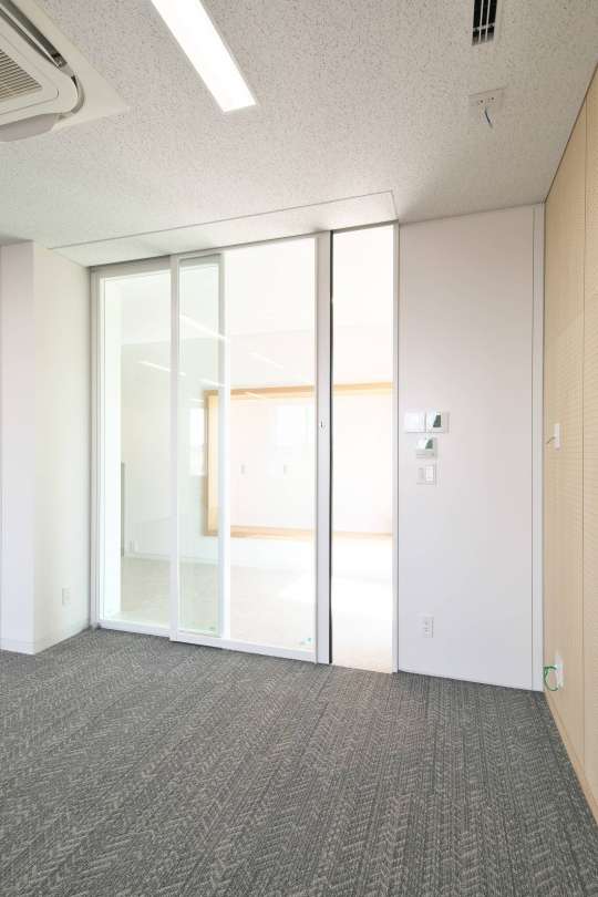 フラットフェイスがおしゃれなWガラスパーティションです